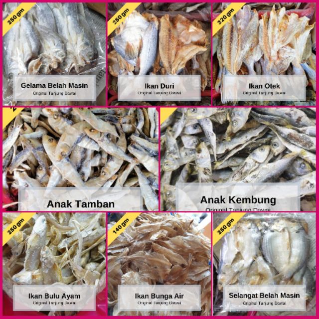Klaw di smnjung rasanya ramai lagi yg x pernah rasa. Kalau barang kering, senang saja nak masukkan dalam senarai. Ikan kering boleh dikeringkan dengan cara dijemur pada panas matahari atau melalui di salai . Ikan masin ini juga merangkumi kesemua jenis ikan yang diproses.